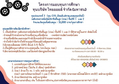 วันที่ 20 กันยายน พ.ศ. 2565 ดร.อรทัย โยธินรุ่งเรือง สุดสงวน ผู้อำนวยการวิทยาลัยเทคนิคสัตหีบ ได้มอบหมายให้ นางสาวเกศราภรณ์ แบบอย่าง เจ้าหน้าที่งานเเนะเเนวฯ ได้นำนักเรียนนักศึกษา รับทุนการศึกษาโครงการมอบทุนการศึกษาเเก่เด็กนักเรียนเเละเยาวชนผู้ยากไร้ในพื้นที่จังหวัดชลบุรี 📚🖋 ให้เเก่นักเรียนนักศึกษาของวิทยาลัยเทคนิคสัตหีบ ⚙️🛠 ณ ศาลาประชาคมเทศบาลเมืองบ้านสวน อำเภอเมืองชลบุรี จังหวัดชลบุรี
