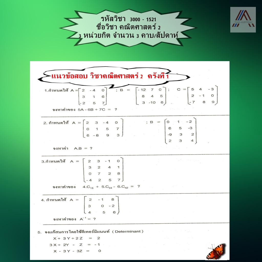 แนวข้อสอบเรื่อง เมทริกซ์และดีเทอร์มิแนนต์
